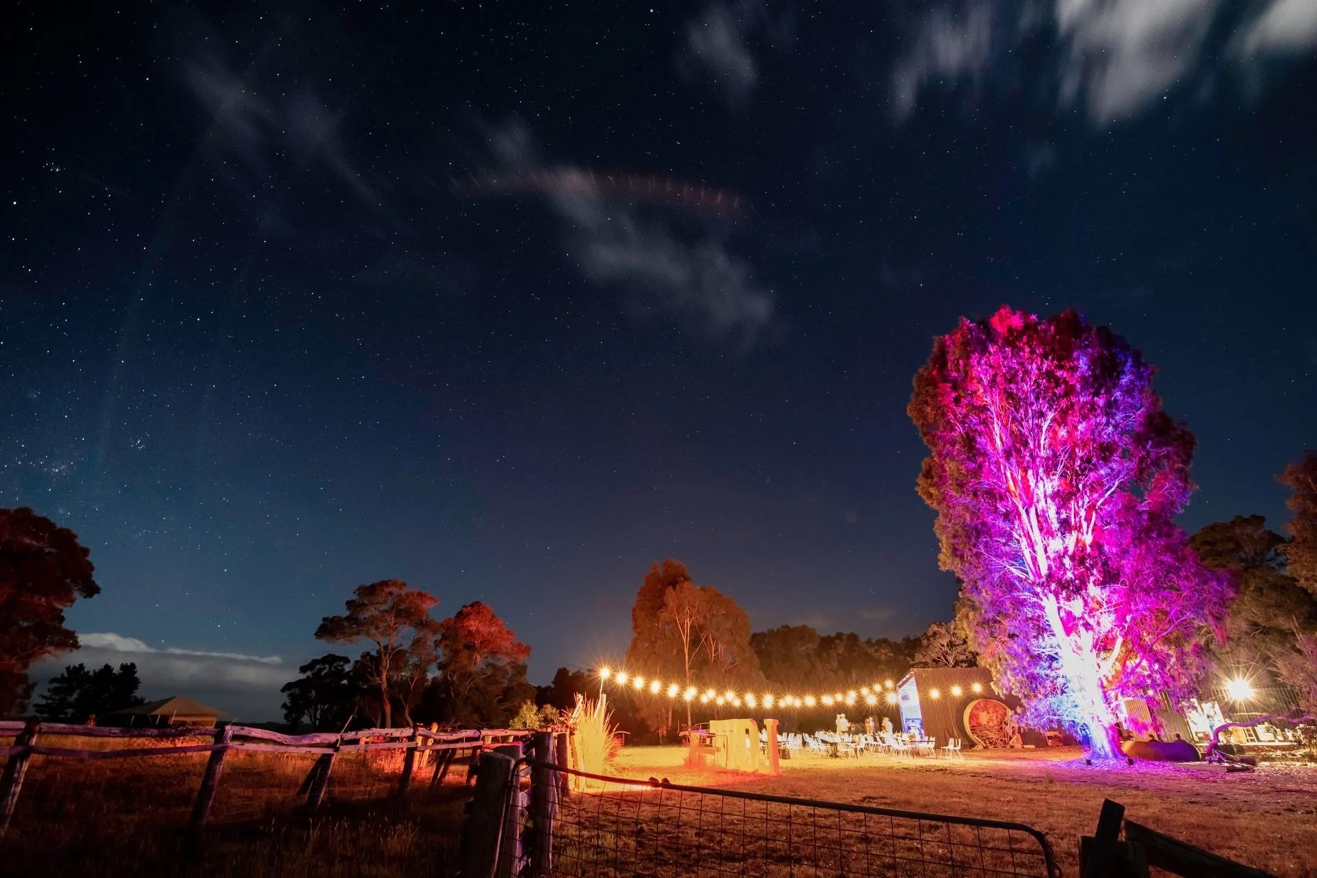 Two Blind Cows offers a beautiful and flexible setting for all kinds of celebrations. With spacious sheds and open paddocks, the property provides the perfect backdrop for birthdays, anniversaries, family gatherings, and group stays. On-site accommodation in four private tents allows guests to celebrate and stay together, surrounded by nature and the quiet charm of the land. Whether it’s an intimate dinner or a larger event, every occasion here feels relaxed, personal, and connected.